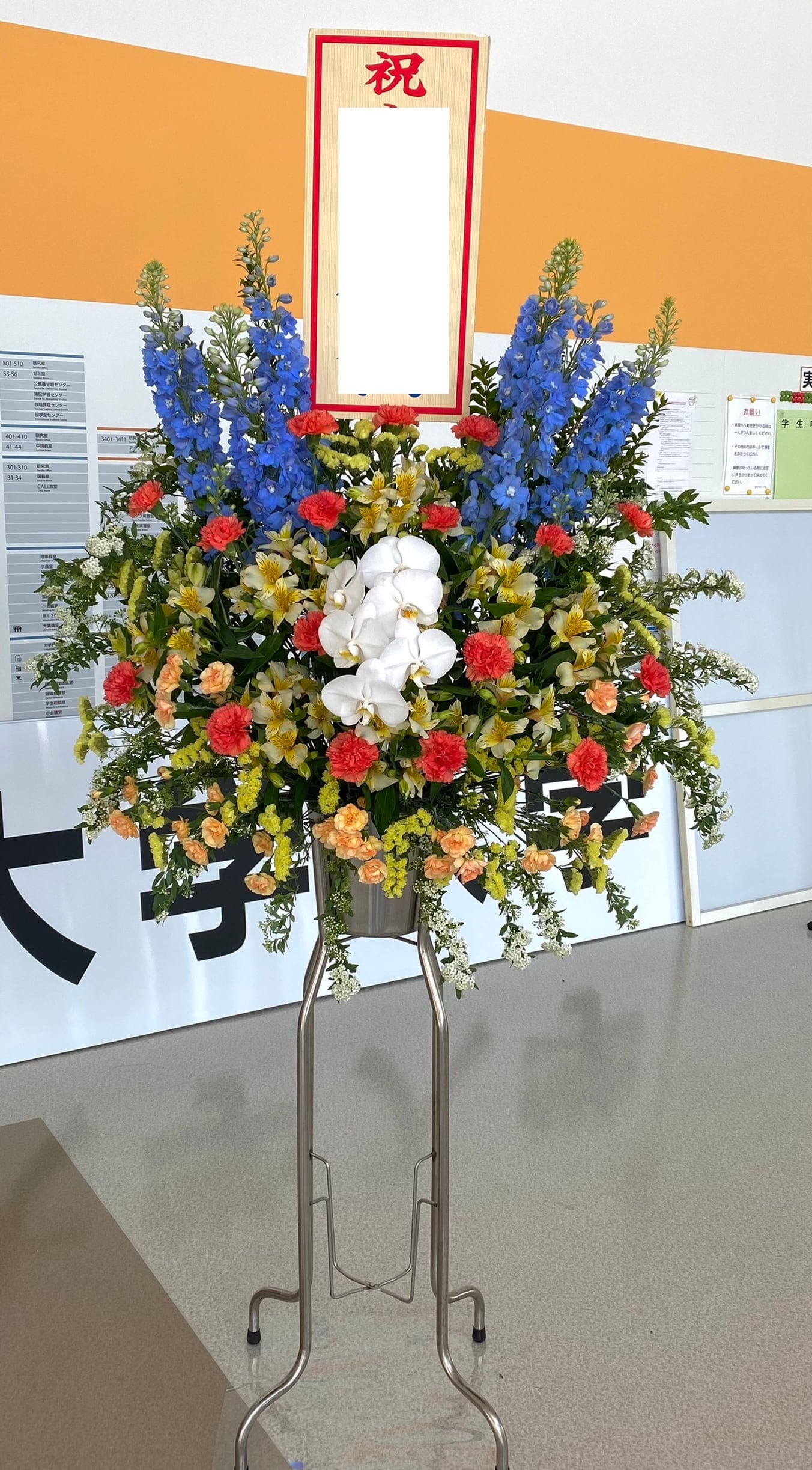 コチョウランなど季節の花を使った見栄えの良い、御祝スタンド仕立ての花 一段盛り